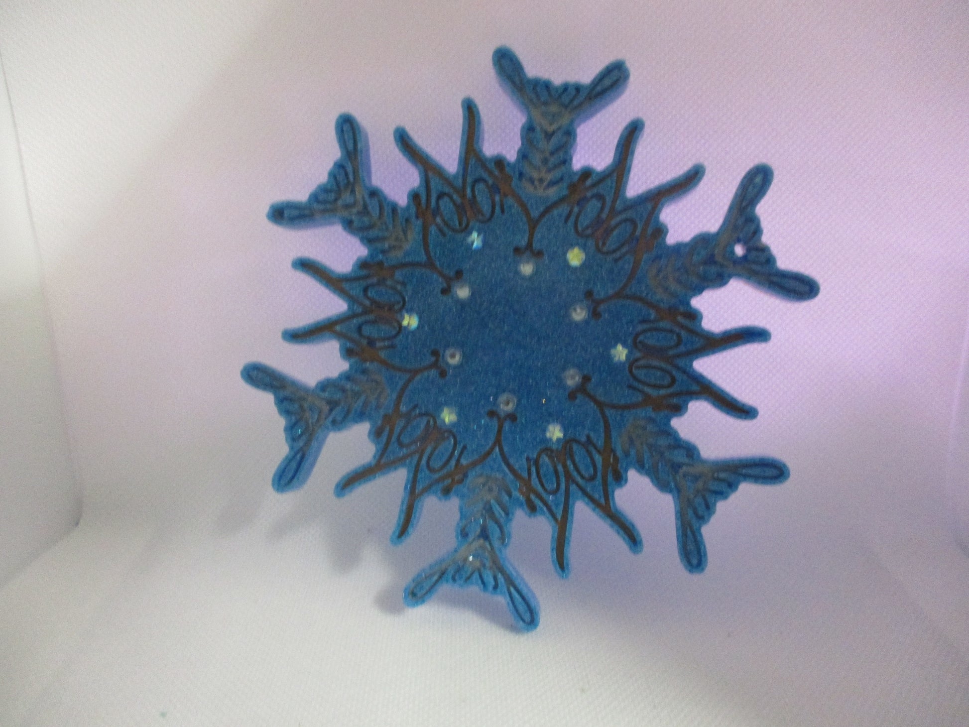 - Intricate snowflake design with detailed crystalline patterns