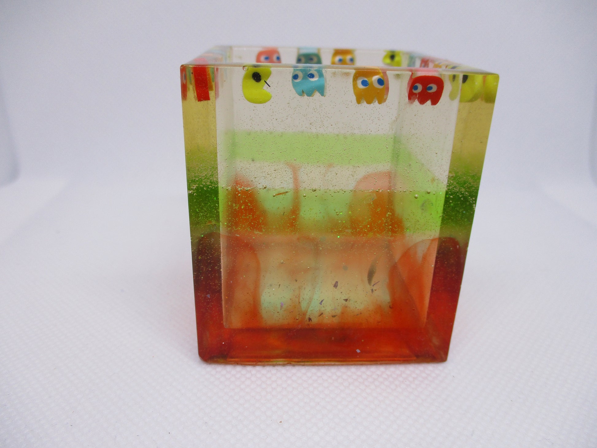 - Crystal-clear resin lets you see the Pac Man scene from every angle